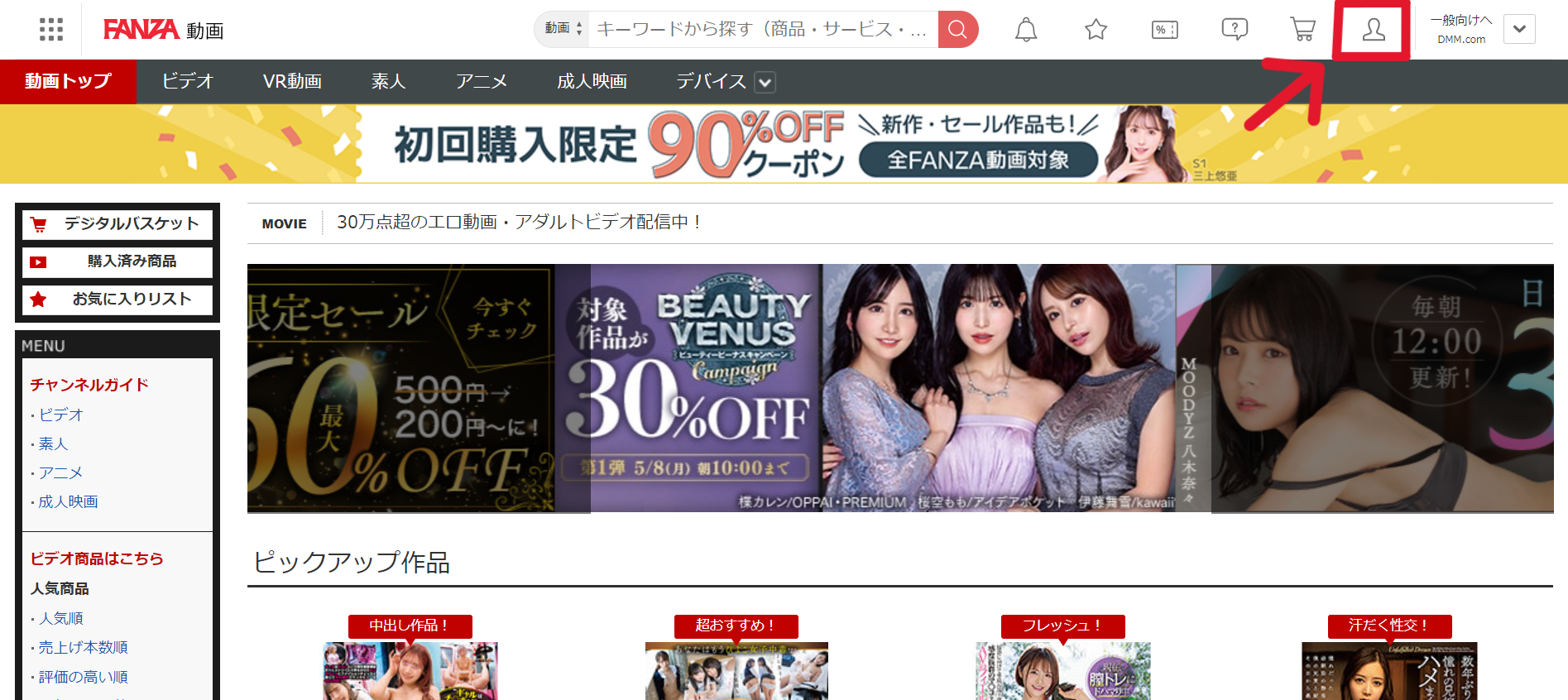 1.FANZAへログイン